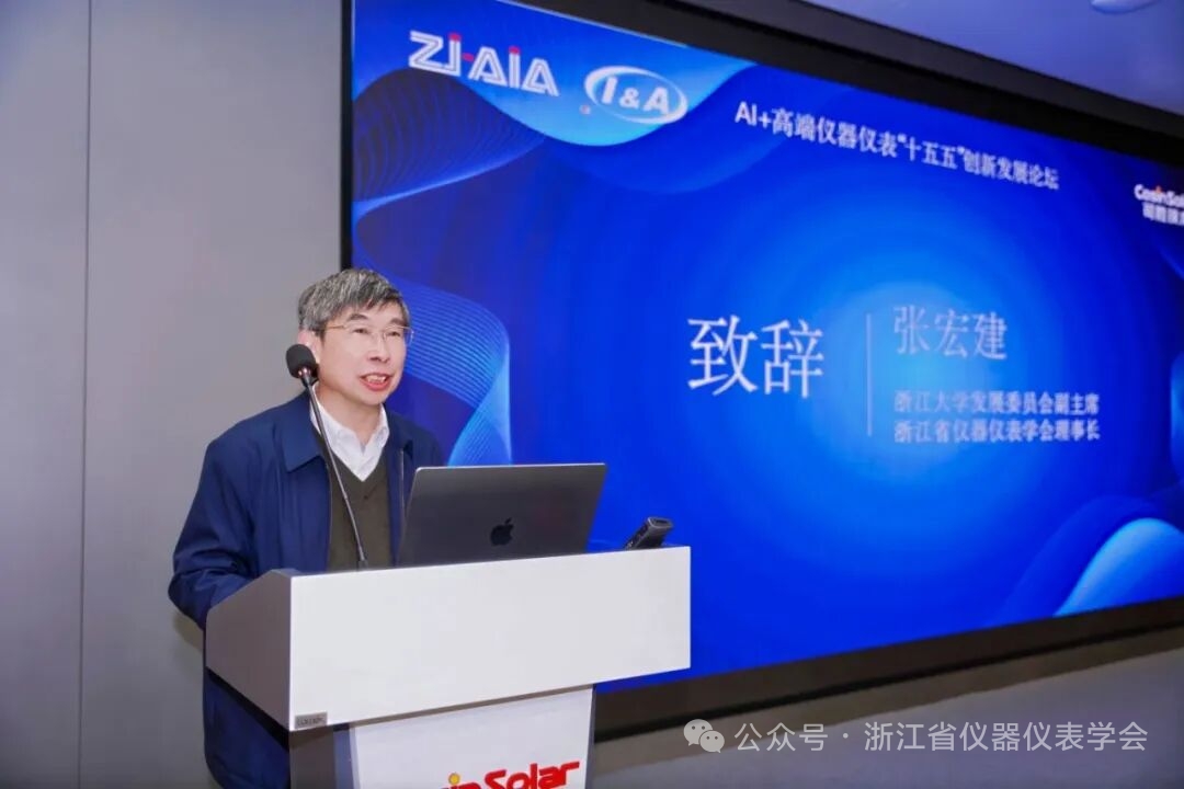 开幕式环节,张宏建理事长在致辞中指出,浙江不仅是全国仪器仪表产业的重要集聚区,产值长期位居全国前列,拥有中控技术、舜宇光学、华立科技、正泰仪表、宁波水表等一批领军企业,更是人工智能创新先行热土。在国家“十五五”规划将高端仪器列为技术攻关重点的背景下,浙江智能仪器仪表产业发展有了更强动力。