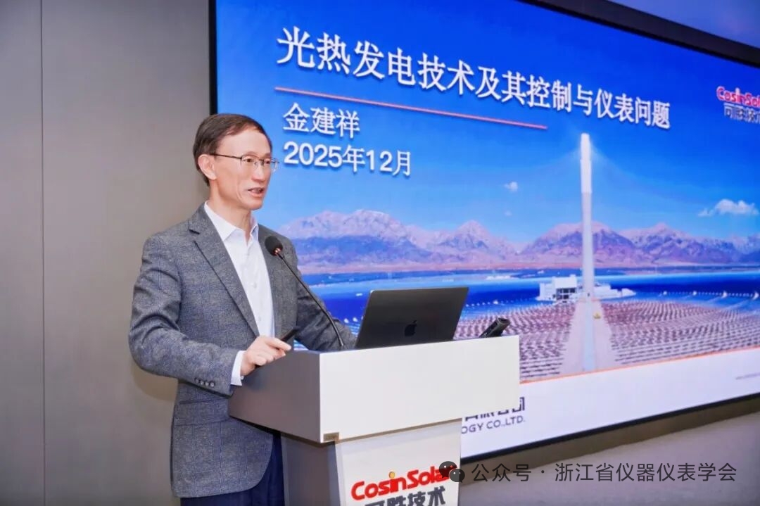 上午的主论坛聚焦前沿技术与行业趋势,多位行业资深专家带来深度分享,金建祥理事长以《光热发电技术及其控制与仪表问题》为题,分享了可胜技术深耕光热发电领域15年的技术突破,深入剖析聚光、吸热、储换热等关键环节的控制难题,为与会代表提供了我国仪器仪表产业在高温、高精度、高可靠性方向自主创新的生动实践案例。